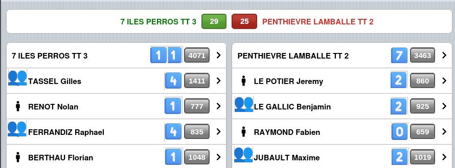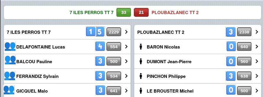 En effet, le gymnase de Pleumeur-Bodou qui nous accueillait exceptionnellement lors du weekend électoral nous a porté chance puisque toutes nos équipes y ont été victorieuses ce soir là (PR, D1,D2, D3 Catherine et D3 Jean).