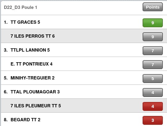 L’Ă©quipe 5 n’a rien pu faire contre une très bonne Ă©quipe de Lannion et s’est inclinĂ©e 17 Ă 1. L’Ă©quipe est 7e et jouera Ă Pontrieux (4e) le 11/4
